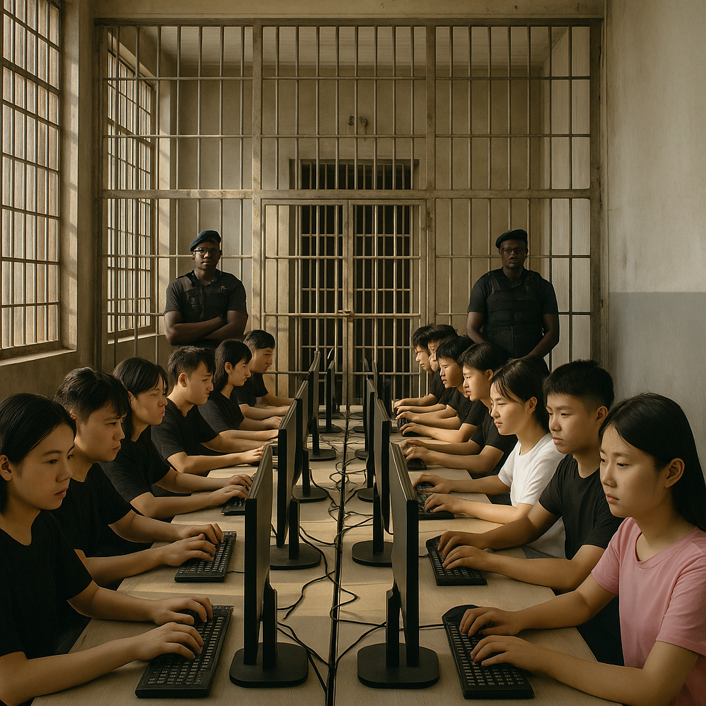 Жизнь внутри скам-центров — это смесь колл-центра, тюрьмы и фабрики, где человеческое тело и время превращены в ресурс. Там нет выходных, личного пространства или тишины. Каждая комната — как клетка с Wi-Fi, и каждый день — повторение вчерашнего.