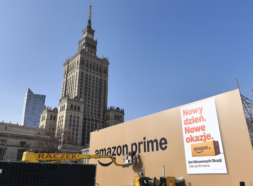 В центре Варшавы появилась необычная инсталляция — гигантская «посылка», установленная рядом с Дворец культуры и науки. Объект уже привлёк внимание жителей города и туристов. Ещё несколько дней назад на этом месте находились лишь строительные леса, а теперь здесь стоит крупная прямоугольная конструкция с логотипом Amazon и сервиса Amazon Prime Video.