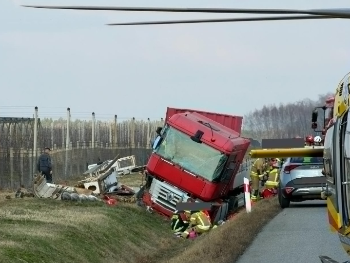 Серьёзное ДТП в Мазовецком воеводстве: грузовик съехал в кювет, пострадали два человека
