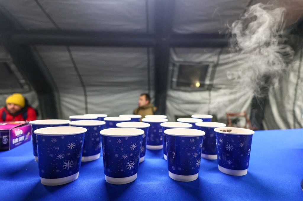 В городе функционируют специальные палатки Государственной пожарной службы, где можно согреться, выпить горячий чай или кофе. Все пункты работают ежедневно с 6:00 до 18:00.